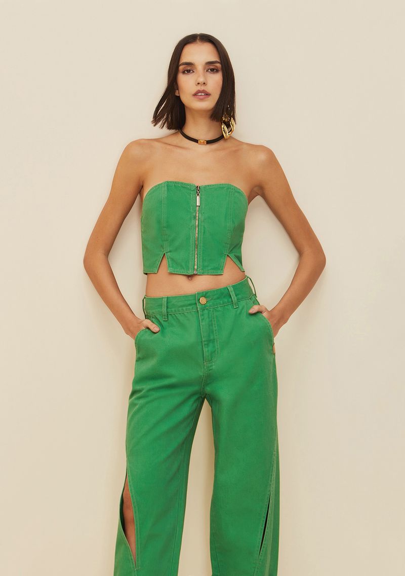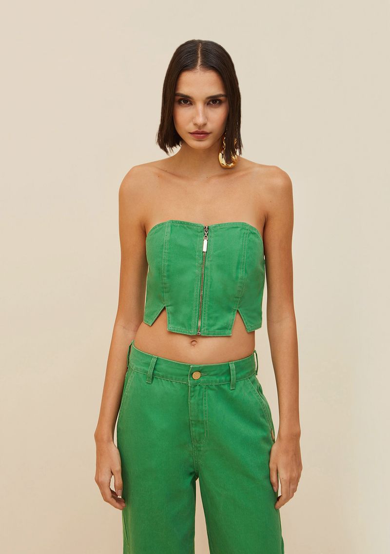 OUTLETFemininoRoupasBlusasTop Morena Rosa Corset Tomara Que Caia Detalhe Zíper Verde