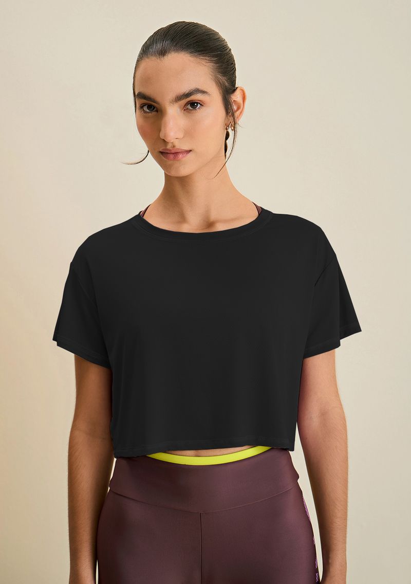 OUTLETFemininoFitnessTopsTop Morena Rosa Cropped Manga Curta Dry Fit Preto