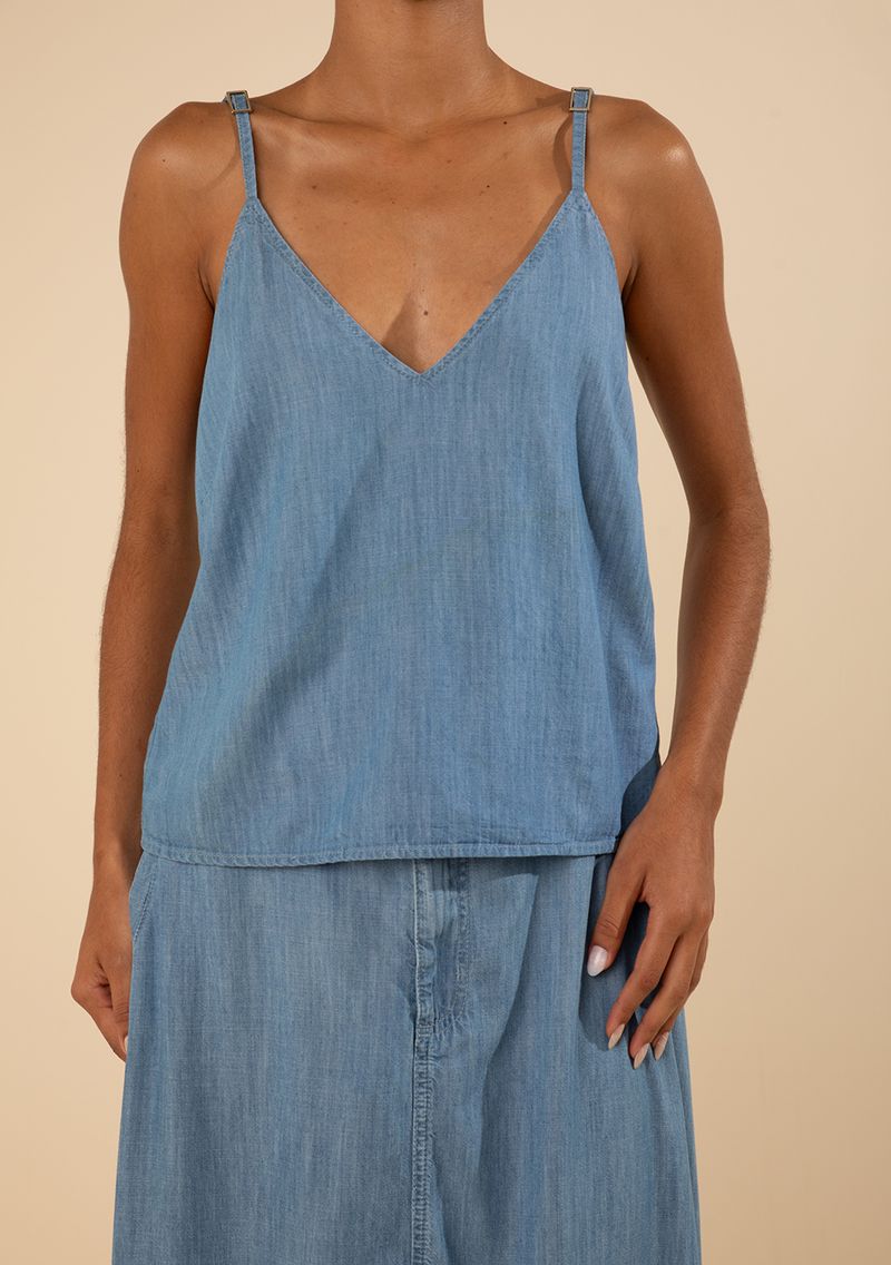 FemininoRoupasBlusasTop Morena Rosa Decote V Alça Fina Azul