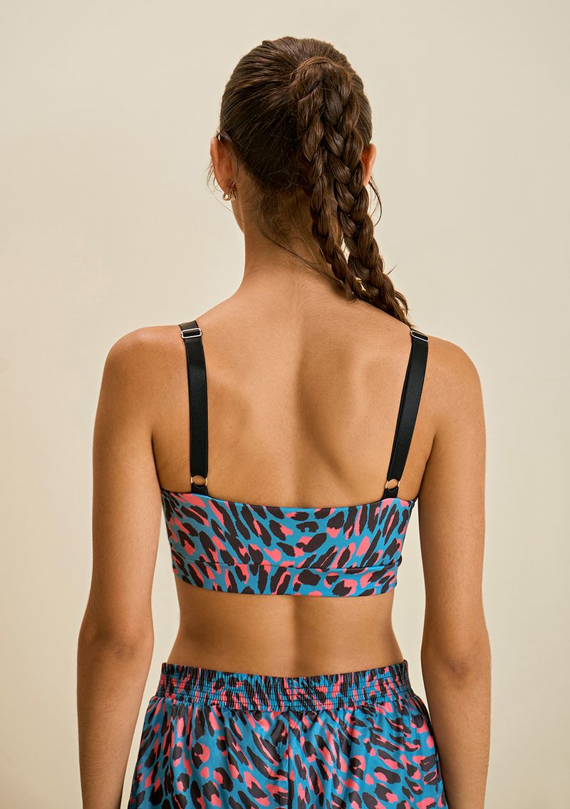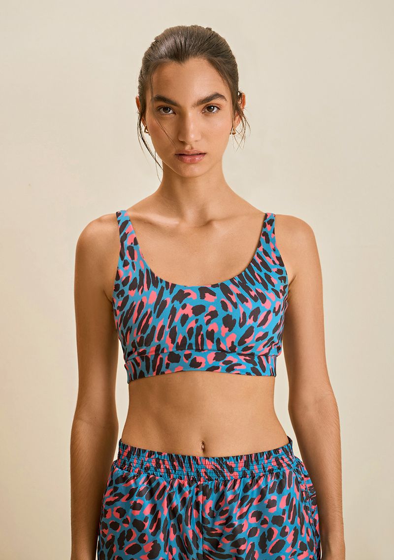 Top Morena Rosa Esportivo Alça Estampado Azul