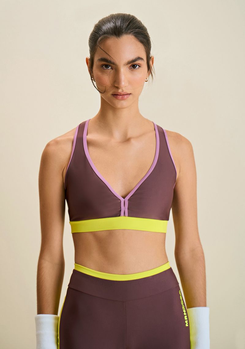 Top Morena Rosa Esportivo Nadador Detalhe Viés Roxo
