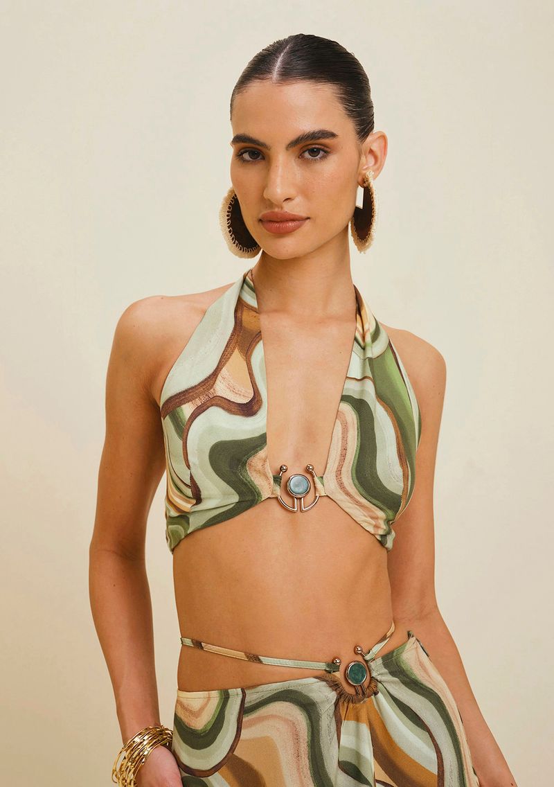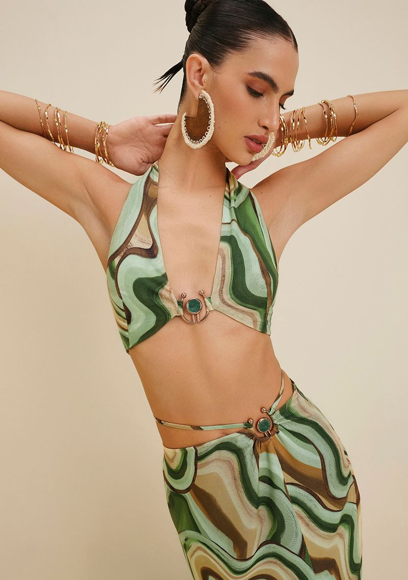 Top Morena Rosa Frente Única Sem Manga Detalhe Avios Verde