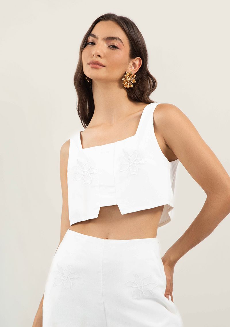 OUTLETFemininoRoupasBlusasTop Zinco Cropped Cavado Bordado Off White