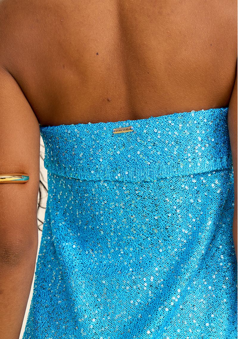 FemininoRoupasBlusasTop Zinco Decote Reto Sem Alça Azul