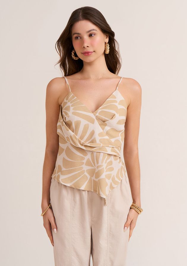 Blusa Zinco Decote V Alça Transpasse Frente Cru