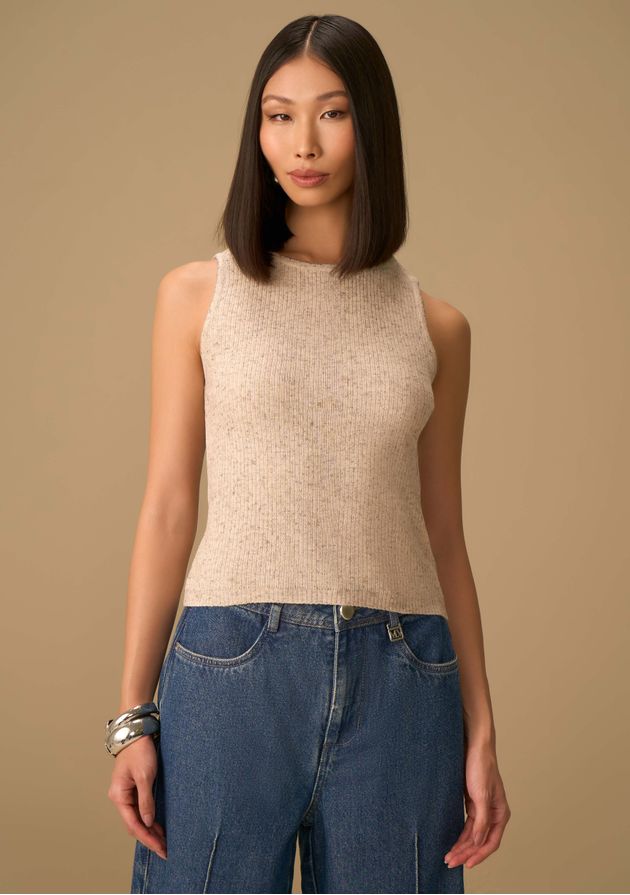 Regata Maria.Valentina Ajustada Decote Careca Padrão Bege