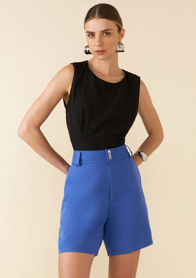 Shorts Maria.Valentina Alfaiataria Com Broche Azul