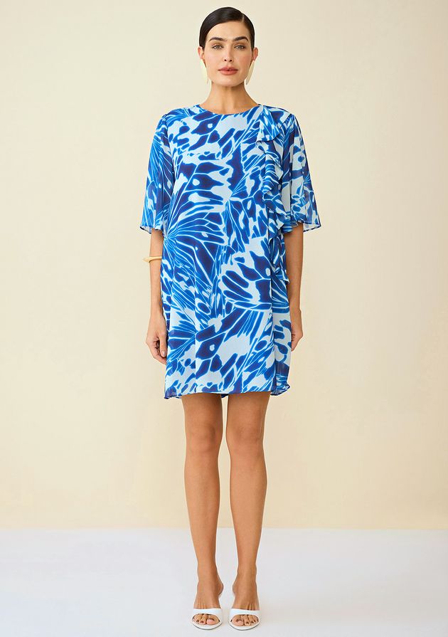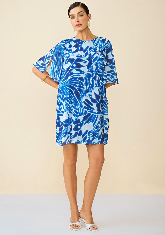 Vestido Maria.Valentina Curto Decote Redondo Com Babado Azul