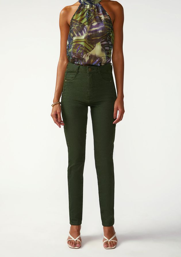 Calça Iódice Slim Cós Alto Alfaiataria Off White