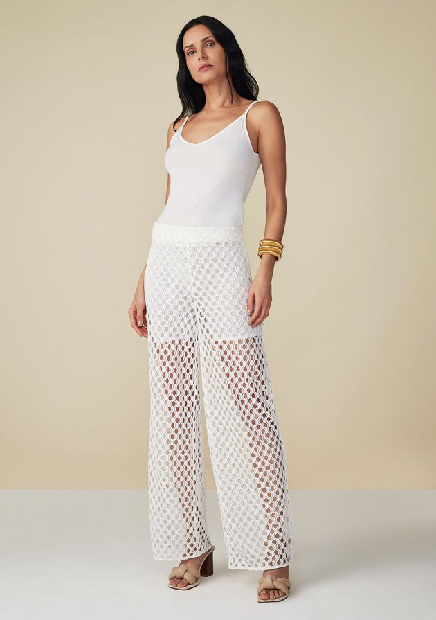 Tamanho363844Adicionar à sacolaCalça Maria.Valentina Pantalona Cós Intermediário Detalhe Tela Off White