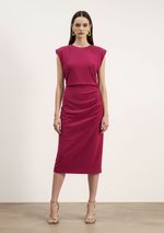 Vestido Ajustado Decote Canoa Manga Curta Midi Rosa