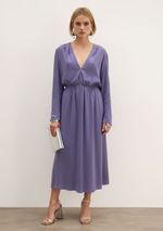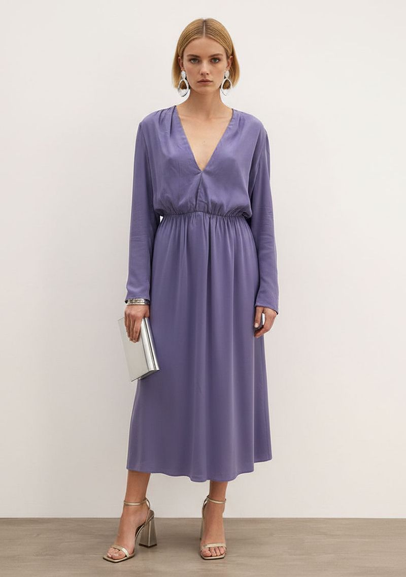 Vestido Ajustado Decote V Manga Longa Midi Lilas