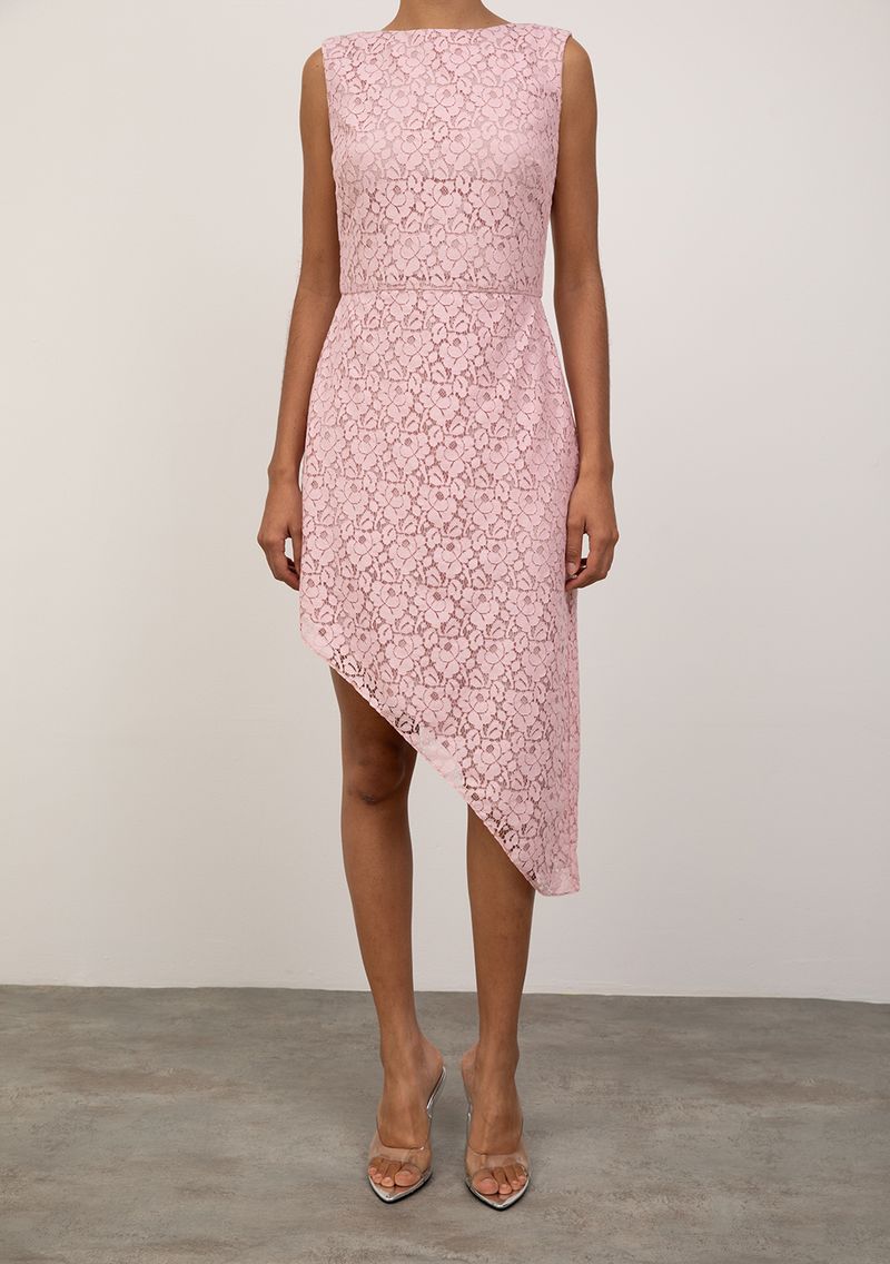 Vestido Iódice Ajustado Decote Canoa Sem Manga Midi Rosa