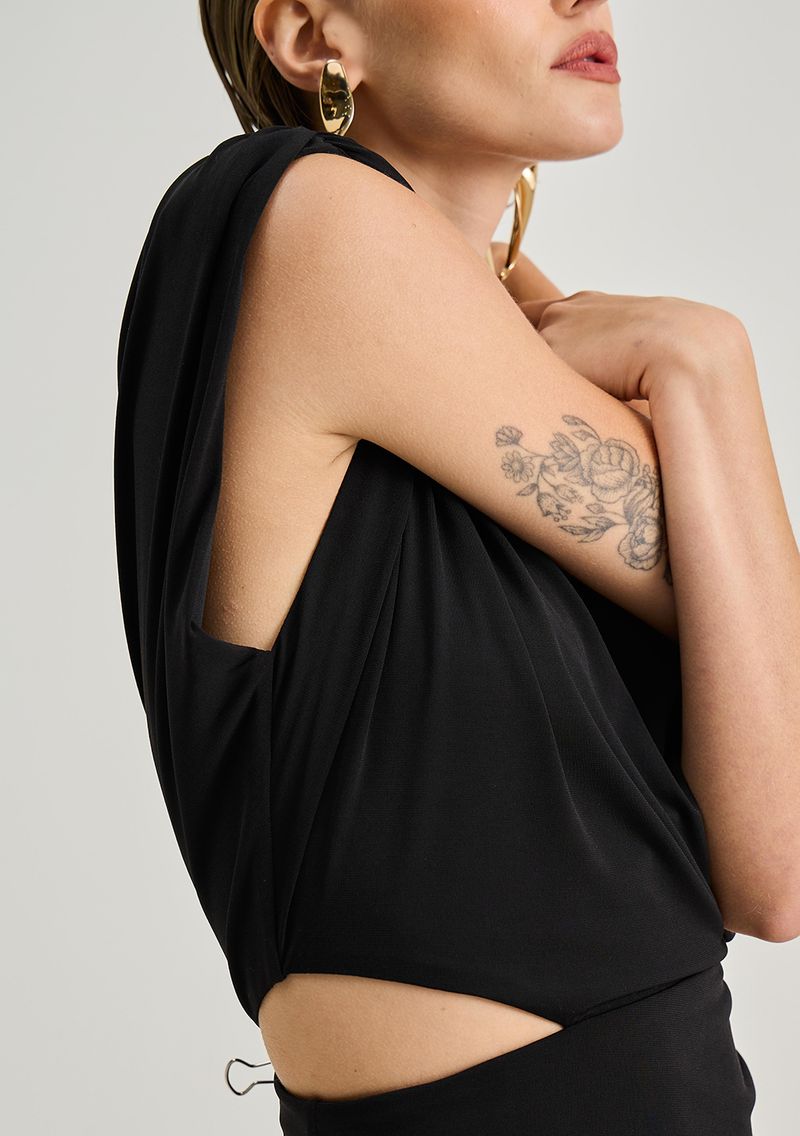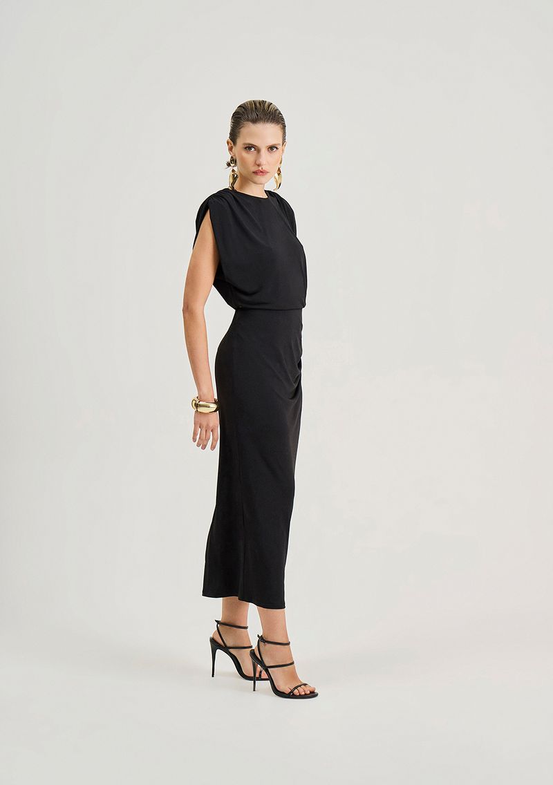 Vestido Iódice Ajustado Decote Careca Sem Manga Midi Preto