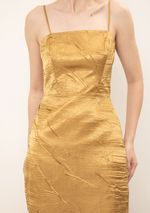 Vestido Iódice Ajustado Decote Reto Com Alça Midi Dourado