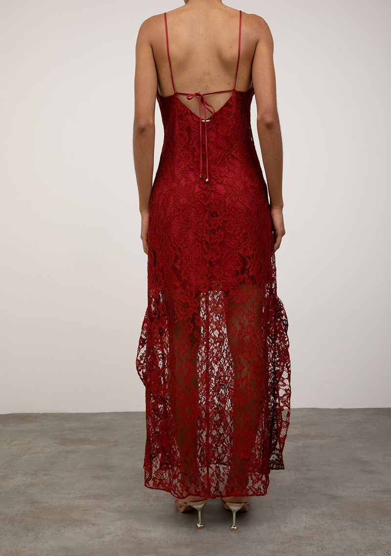 Vestido Iódice Ajustado Decote V Com Alça Midi Vermelho