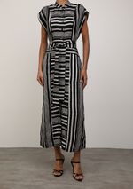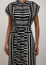 FemininoRoupasTricotsVestidosAlfaiatariaVestido Iódice Ajustado Gola Clássica Manga Curta Midi Preto