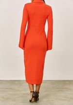 Vestido Iódice Ajustado Polo Manga Longa Midi Vermelho