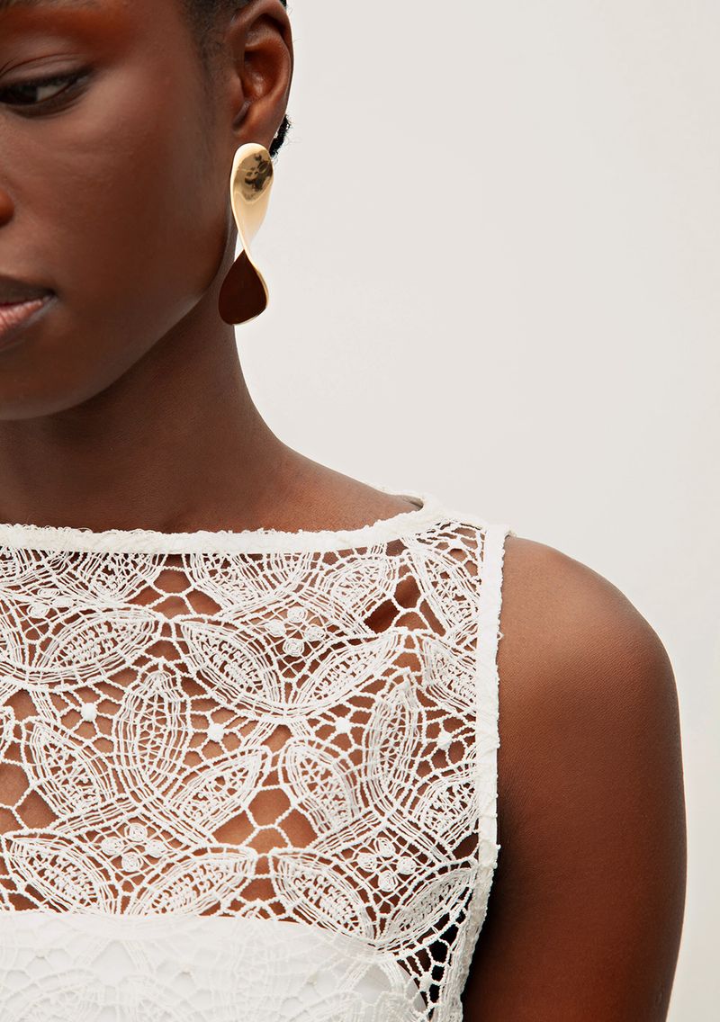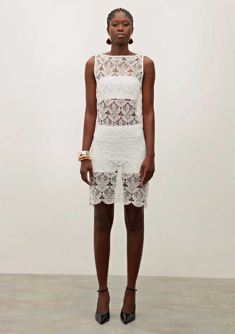 Vestido Iódice Curto Decote Canoa Detalhe Pence Off White