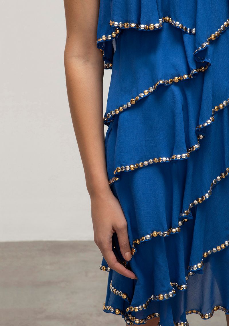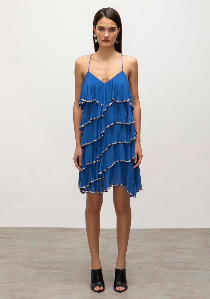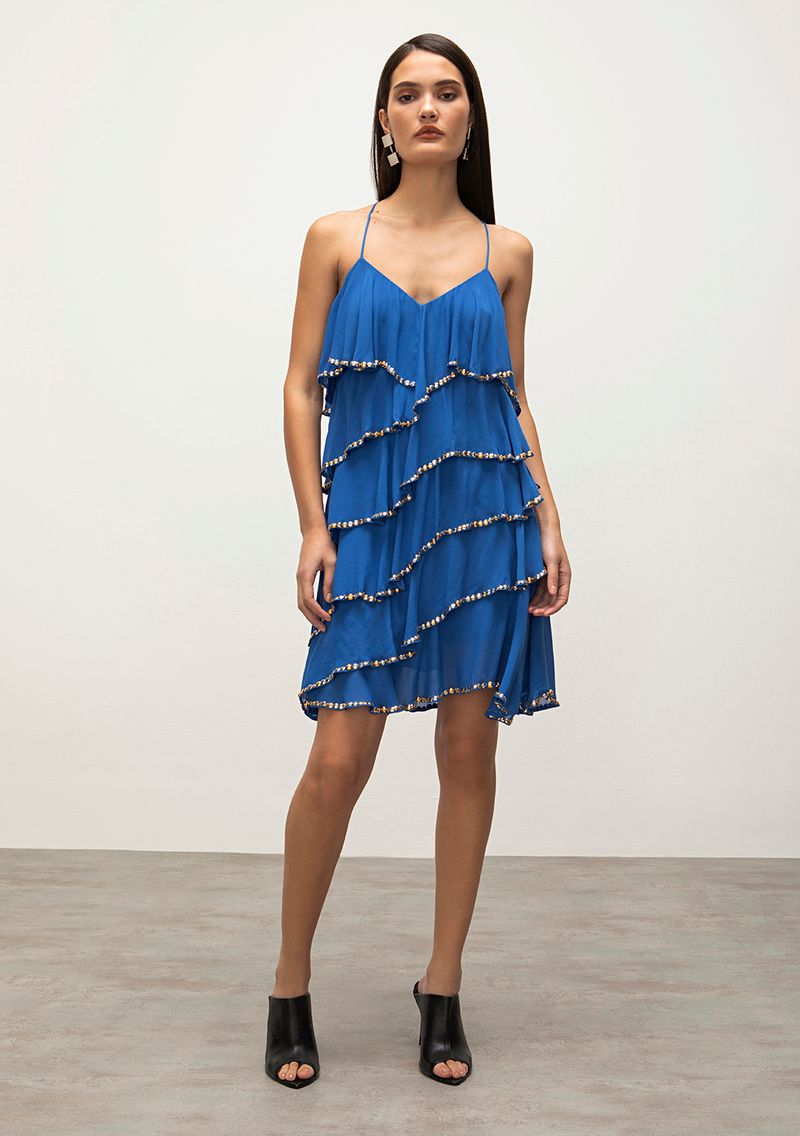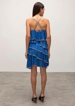 OUTLETFemininoRoupasTricotsVestidosAlfaiatariaVestido Iódice Curto Decote V Bordado Azul