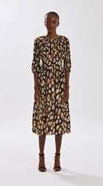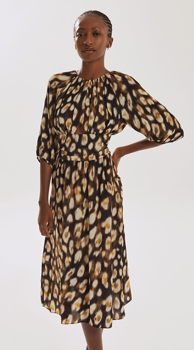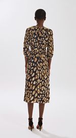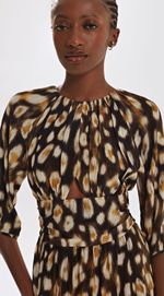 Vestido Iódice Midi Decote Redondo Abertura Frente Marrom