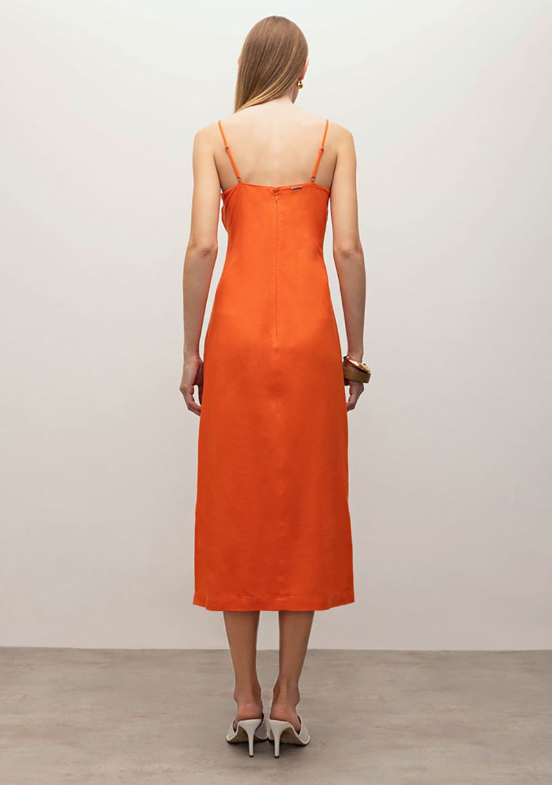 Vestido Iódice Midi Decote Reto Com Franzido Laranja