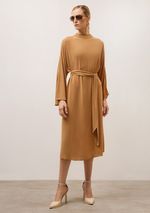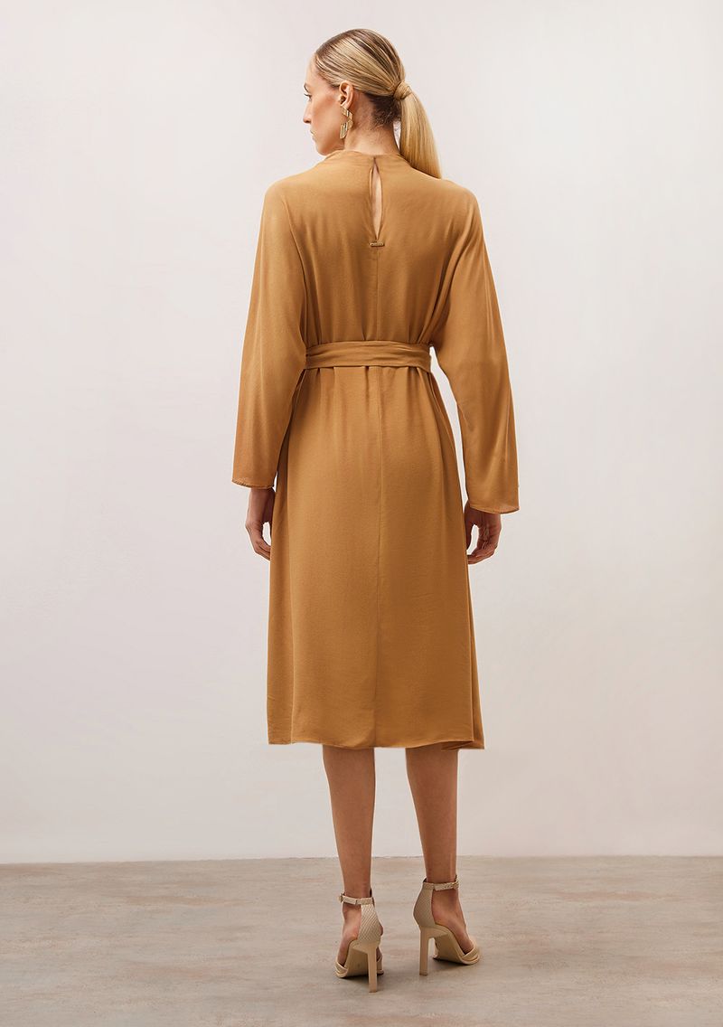 Vestido Iódice Midi Gola Alta Com Faixa Marrom