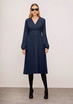 Vestido Iódice Solto Decote V Manga Longa Midi Azul