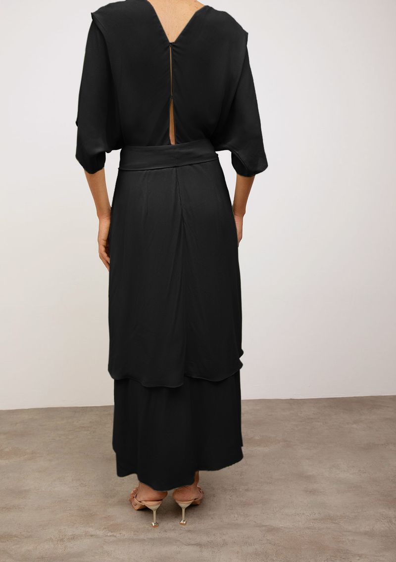 Vestido Iódice Solto Decote V Manga Longa Midi Preto