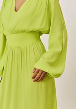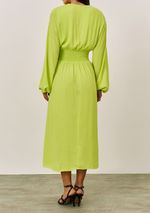 Vestido Iódice Solto Decote V Manga Longa Midi Verde
