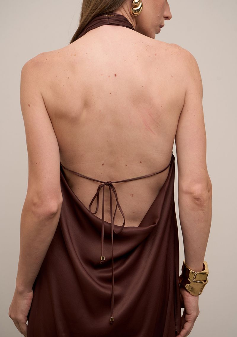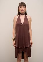 Vestido Iódice Solto Decote V Sem Manga Curto Marrom