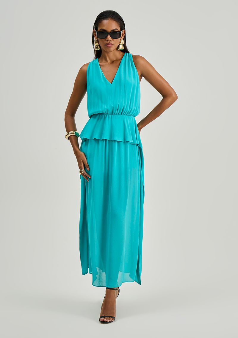 Vestido Iódice Solto Decote V Sem Manga Midi Azul