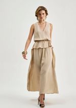 FemininoRoupasTricotsVestidosAlfaiatariaVestido Iódice Solto Decote V Sem Manga Midi Bege
