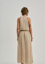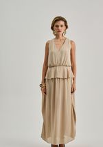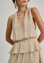 Vestido Iódice Solto Decote V Sem Manga Midi Bege