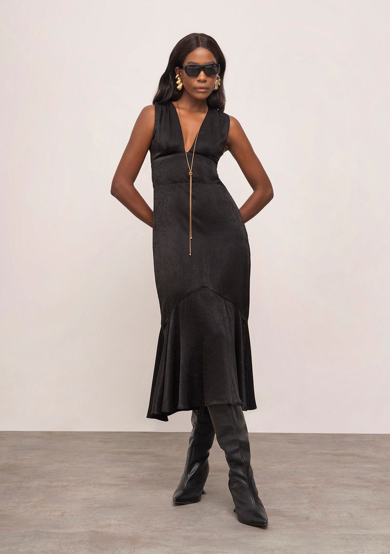 Vestido Iódice Solto Decote V Sem Manga Midi Preto