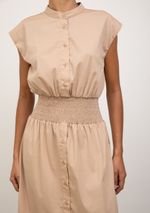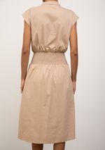 Vestido Iódice Solto Gola Clássica Sem Manga Midi Bege