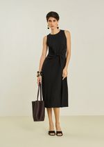 Vestido Maria.Valentina Ajustado Decote Canoa Sem Manga Midi Preto
