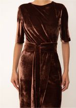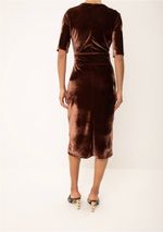 Vestido Maria.Valentina Ajustado Decote Careca Manga 3 Quartos Midi Marrom