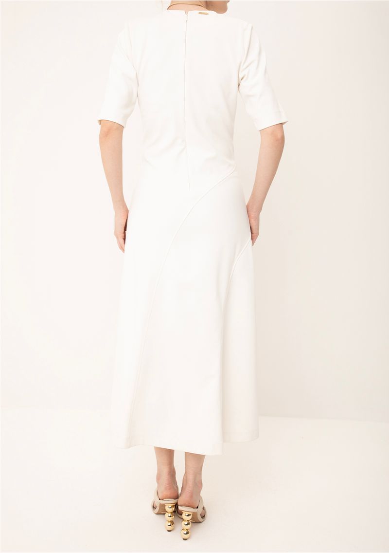Vestido Maria.Valentina Ajustado Decote Careca Manga 3 Quartos Midi Off White