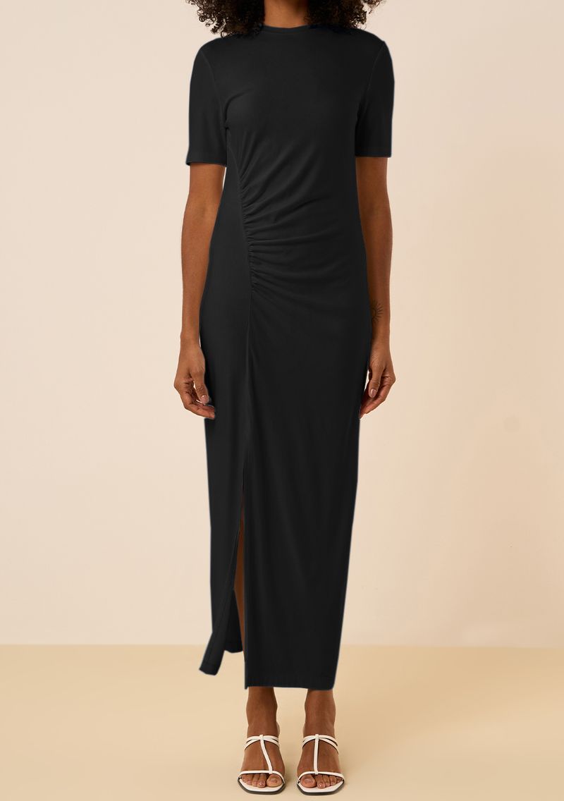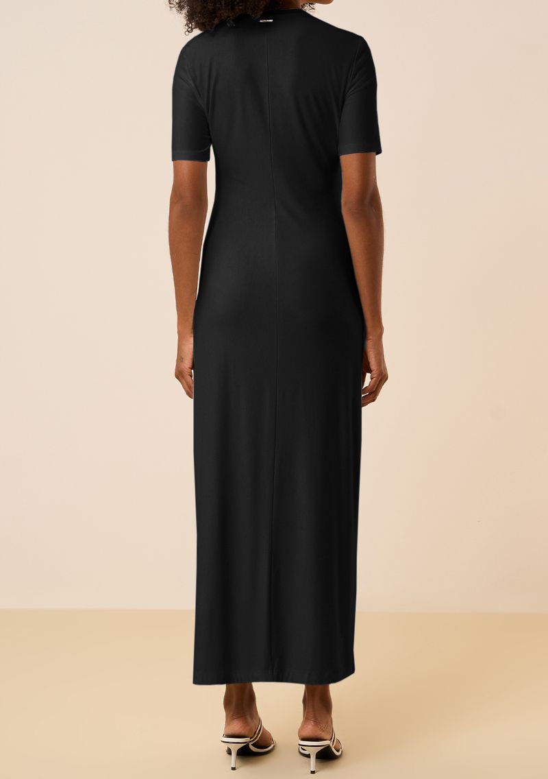 Vestido Maria.Valentina Ajustado Decote Careca Manga Curta Midi Preto