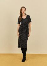 Vestido Maria.Valentina Ajustado Decote Careca Manga Curta Midi Preto