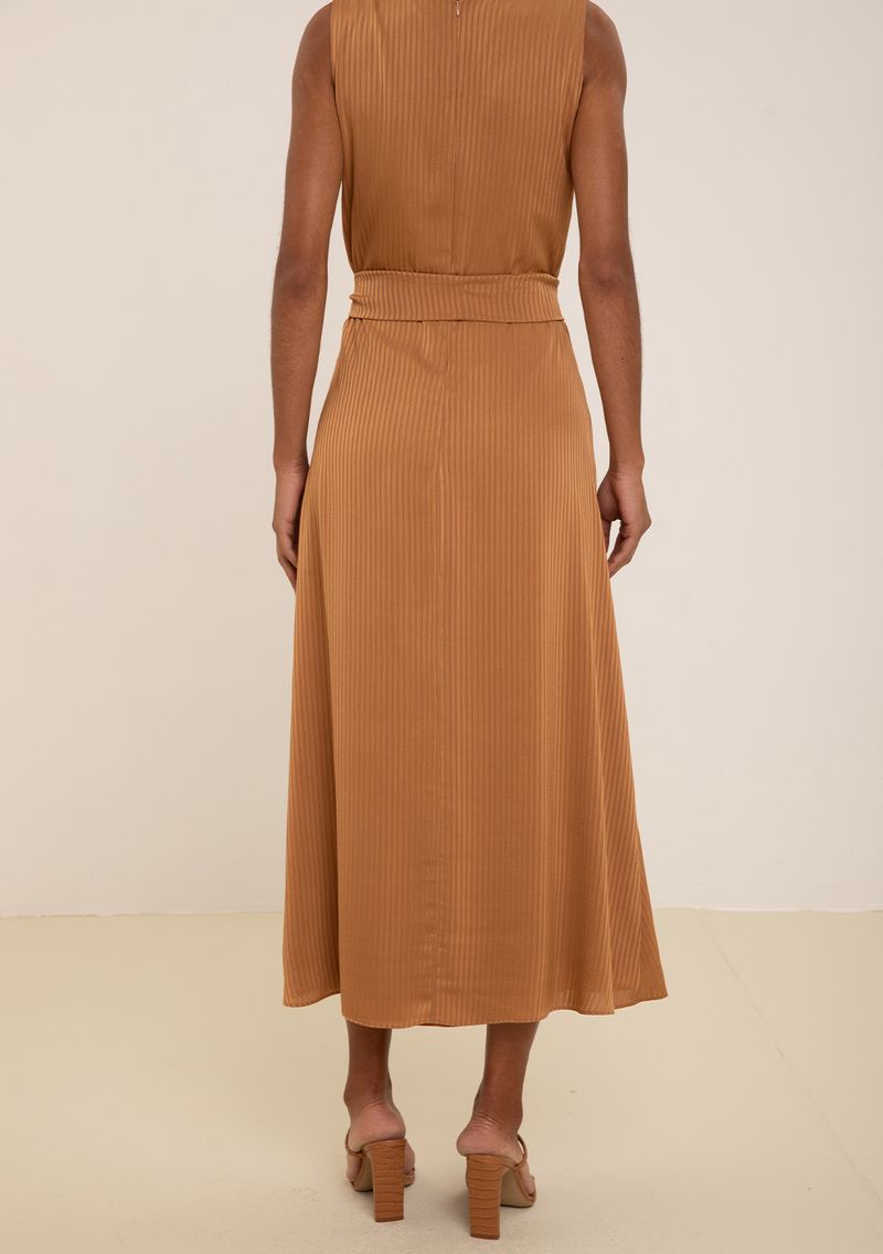 Vestido Maria.Valentina Ajustado Decote Reto Sem Manga Longo Marrom