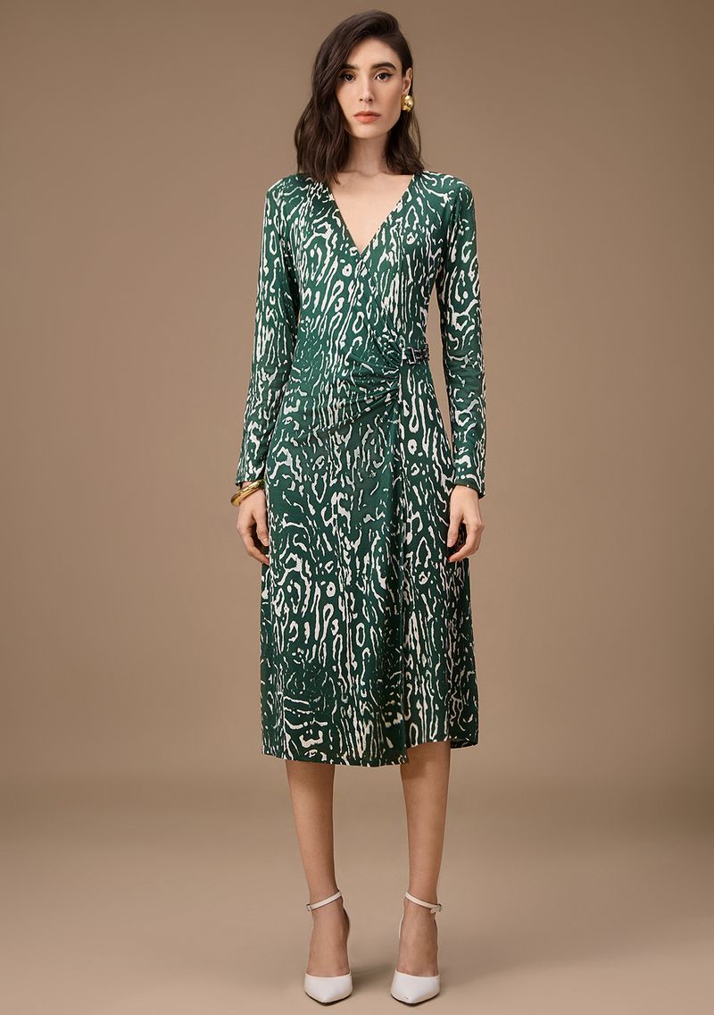 Vestido Maria.Valentina Ajustado Decote Transpassado Manga Longa Midi Verde