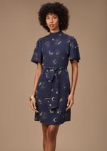 OUTLETFemininoRoupasVestidosVestido Maria.Valentina Ajustado Gola Alta Manga Curta Curto Azul Escuro