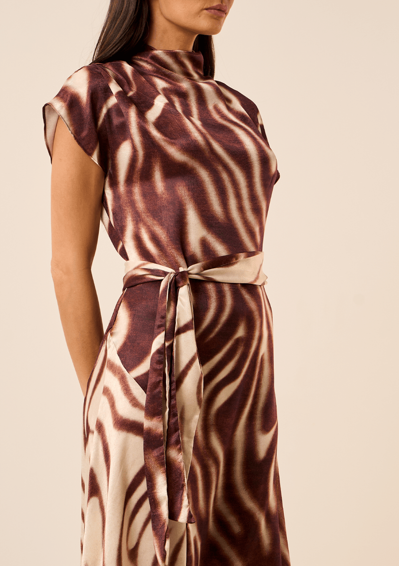 FemininoRoupasVestidosVestido Maria.Valentina Ajustado Gola Alta Manga Curta Midi Marrom