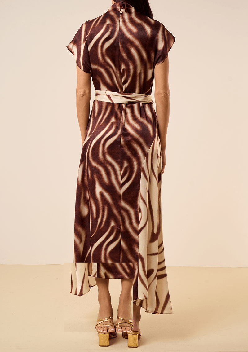 Vestido Maria.Valentina Ajustado Gola Alta Manga Curta Midi Marrom