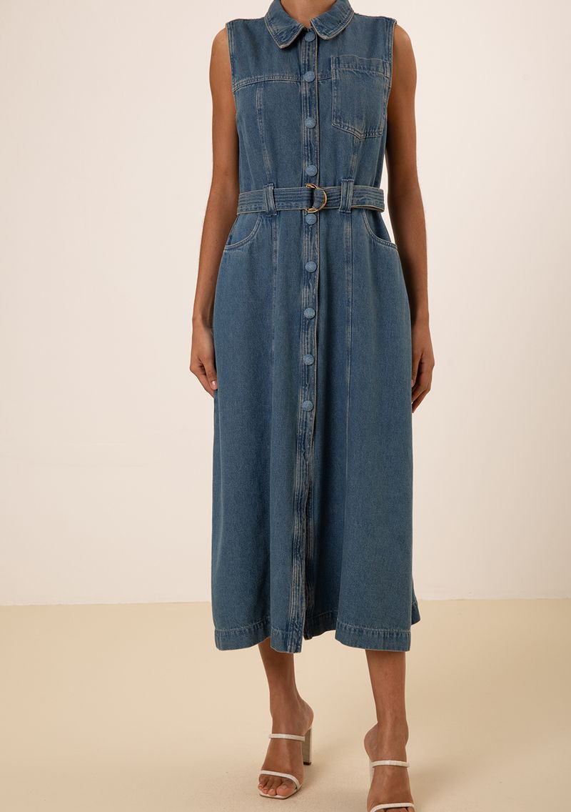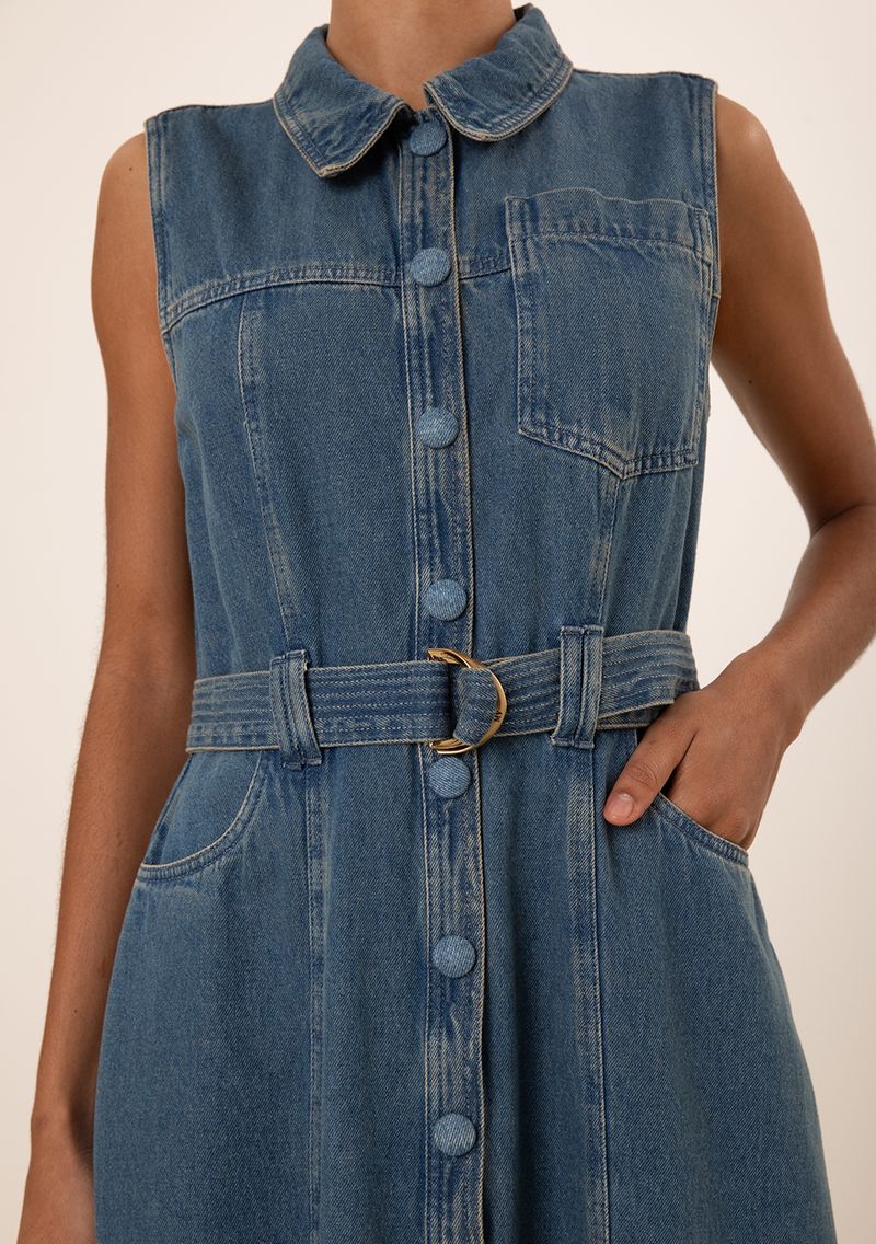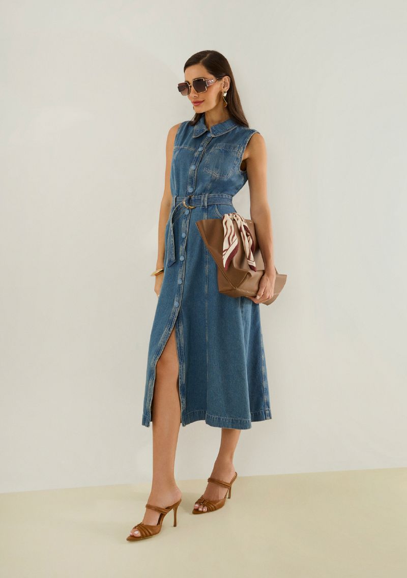 FemininoRoupasVestidosVestido Maria.Valentina Ajustado Gola Clássica Sem Manga Midi Azul