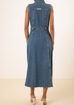Vestido Maria.Valentina Ajustado Gola Clássica Sem Manga Midi Azul