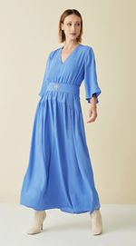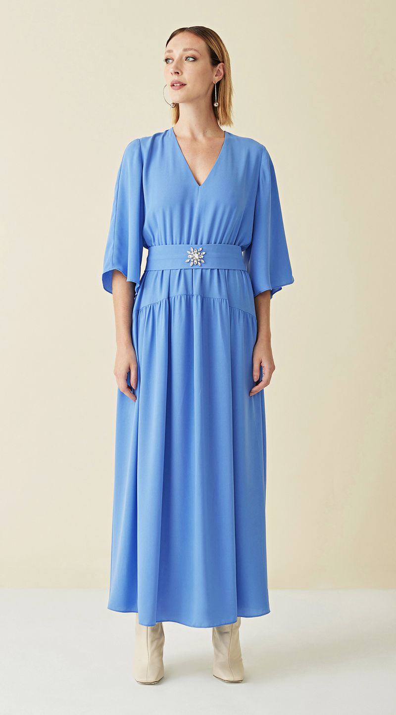 OUTLETFemininoRoupasVestidosVestido Maria.Valentina Longo Decote V Detalhe Bordado Azul