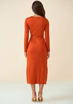 OUTLETFemininoRoupasVestidosVestido Maria.Valentina Midi Decote Redondo Torção Frente Laranja